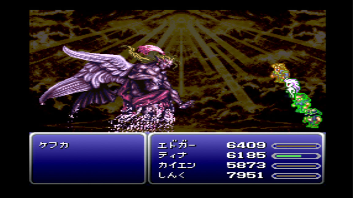 いやー結構LV上げたと思ってけど最終ボスのケフカが意外と強かったなぁ。